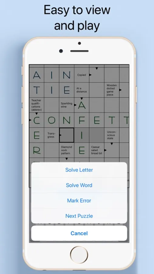 The sound and graphics are also designed for true crossword aficionados. Choose from three visual interfaces that recreate the atmosphere of the crossword in the Sunday paper. If you miss using your favorite pen to solve puzzels, you’ll love the optional sounds of a moving pen as you fill in the squares, custom recorded for each letter!
