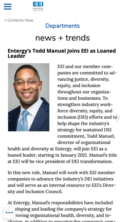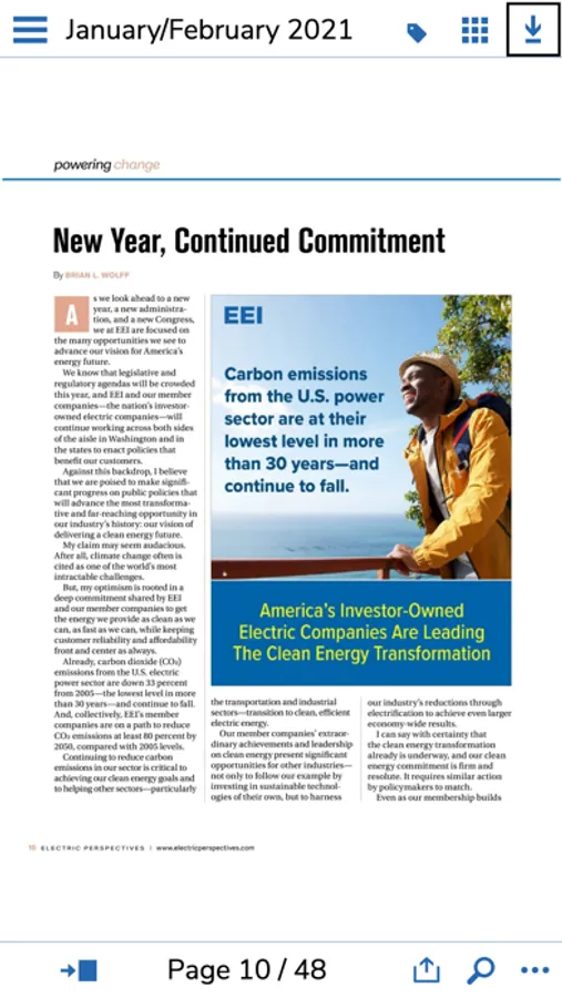 ELECTRIC PERSPECTIVES is the magazine for executives and managers in shareholder-owned electric utilities. Published by Edison Electric Institute, EP offers insight into the legislative, regulatory, environmental, technological, financial, operational, and economic issues affecting the power industry today. Executives and managers rely on EP to identify and analyze trends and ideas that will have an impact on electric utilities in the future. The magazine’s engaging style and wide-ranging editorial—in feature articles, interviews, opinion, and shorter trends pieces—make it necessary (and interesting) reading for the intelligent utility businessperson.