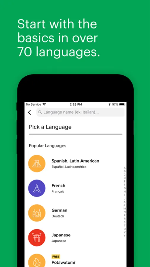 • All Languages: An auto-renewable monthly subscription with access to all of our languages for you and up to five additional family members.