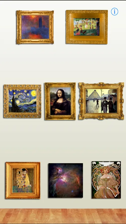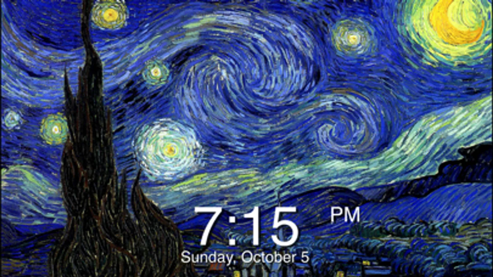 Art Clock Lite has several amazing works of art to enjoy. Van Gogh, Monet, Da Vinci, Mucha, Klimt, NASA, and others. Use it as a clock with beautiful backgrounds with the option of a slideshow feature, or just save your favorite backgrounds to your photos and use them as wallpapers.