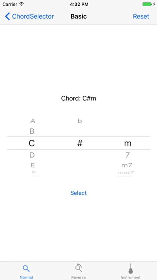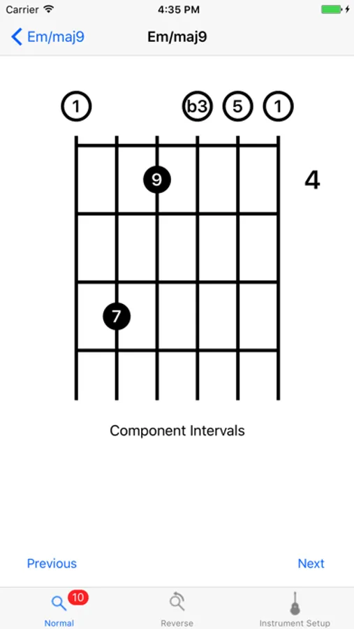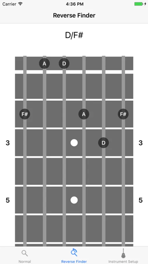 Also included is a reverse lookup option. Nice if you are a bit adventurous and you are coming up with your own chords on your instrument, but don't know how they are called. Fretter can help you here by providing you with the correct naming.