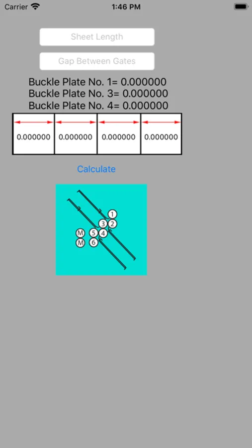 This app calculates the buckle plate adjustments and panel sizes for a four-panel gate fold.