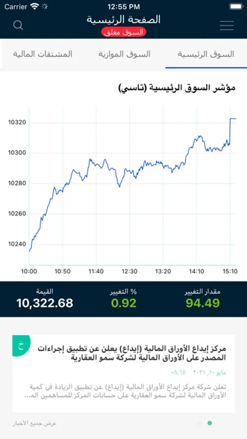 This is the official application of the Saudi Stock Exchange (Tadawul). The application displays the Information of the Saudi Stock Exchange (Tadawul) including the Equity, Sukuk & Bonds, and ETFs markets. Information displayed in this application is delayed by 5 minutes from the time of its original dissemination. The application allows users to:
