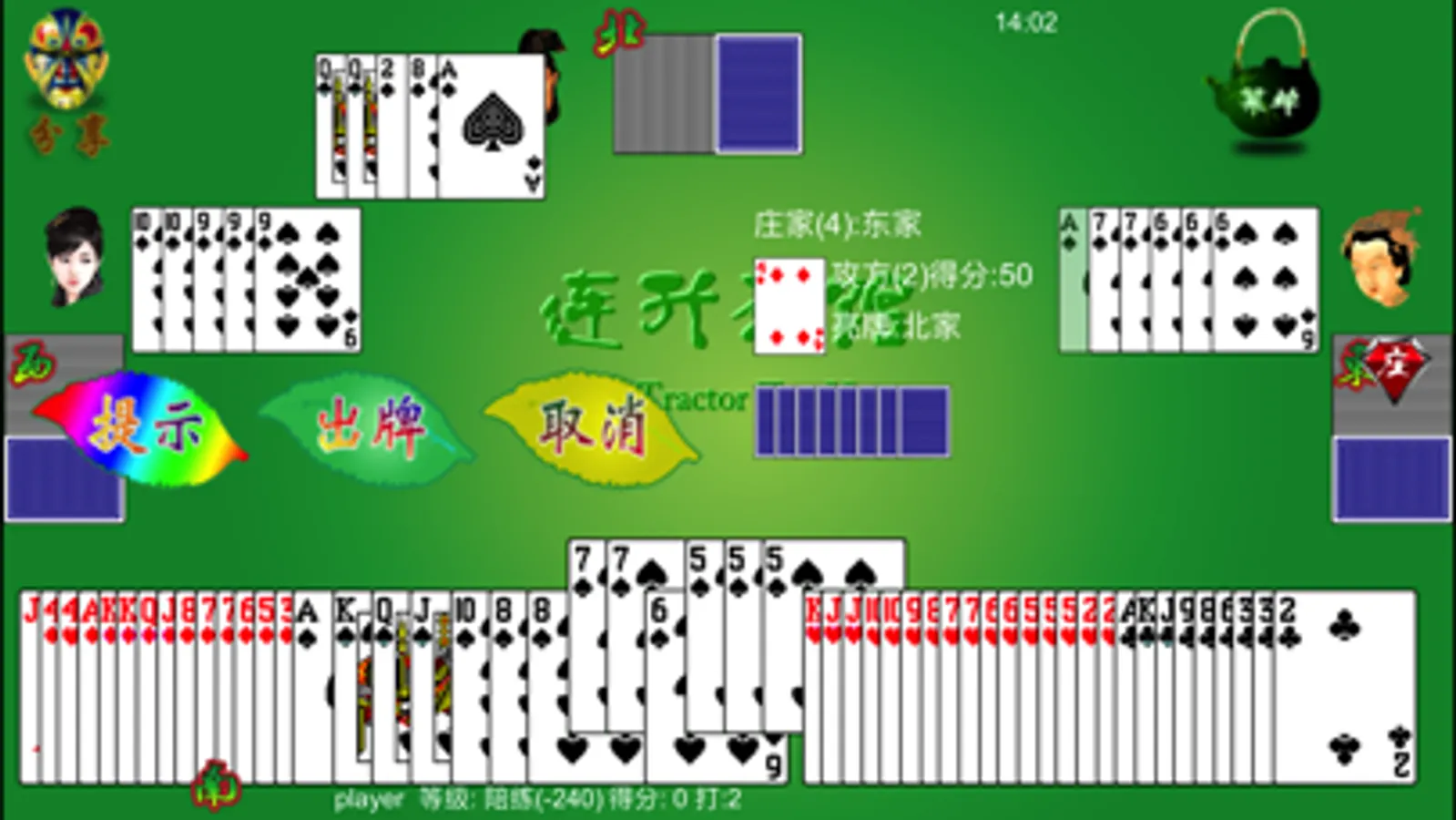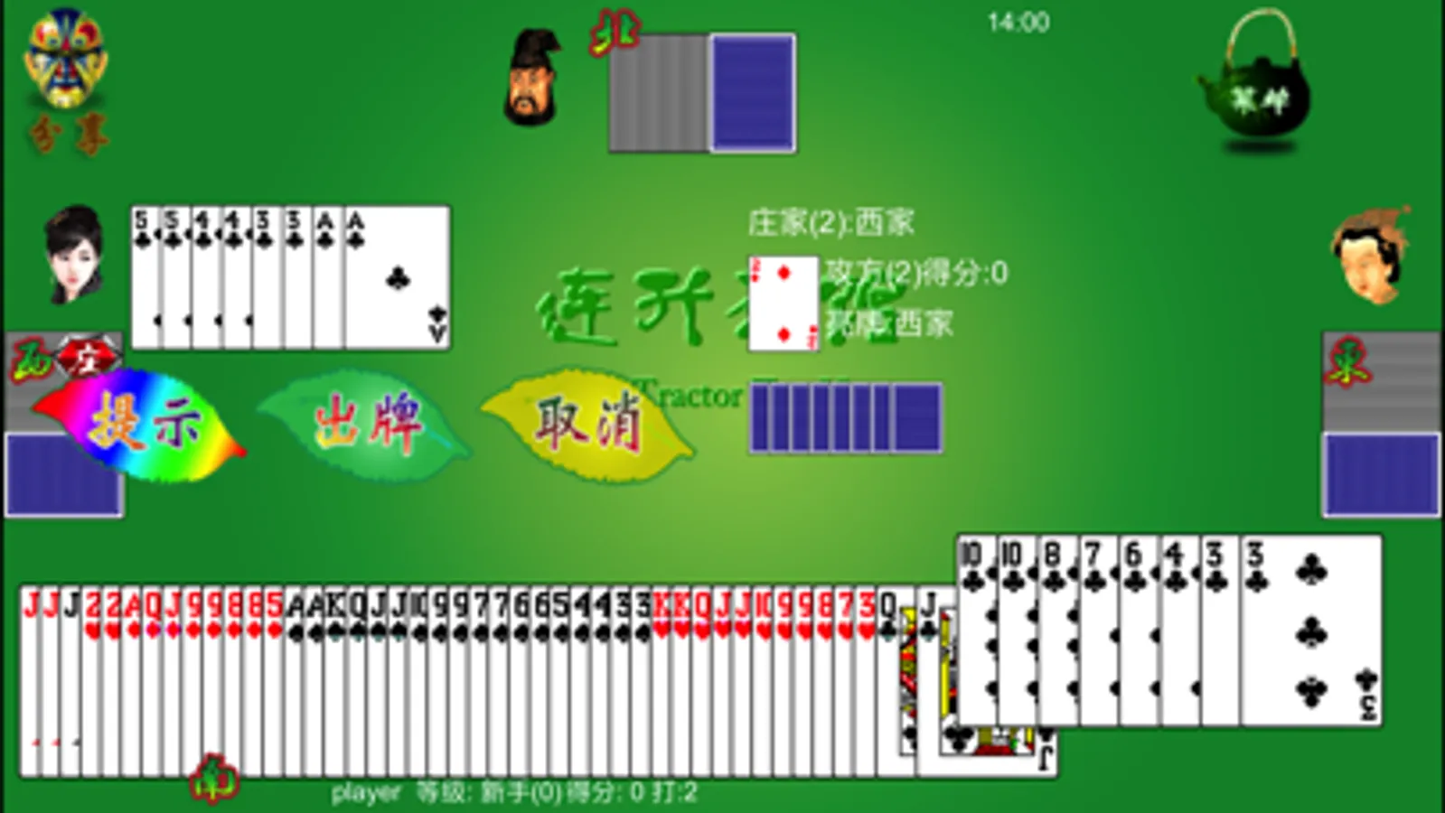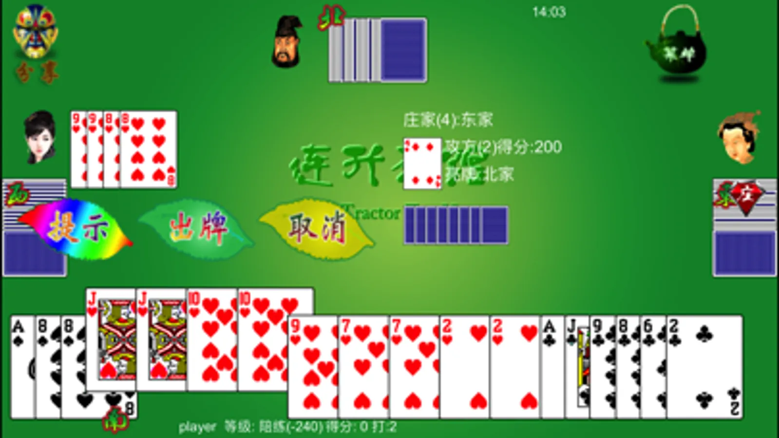The game logic is a little similar as worldwide games Bridge or Spades. You have 1 partner and 2 opponents to compete. But poker tractor has more fun and surprises than other card games. Here the luck and destiny might be the top keys comparing to the techniques and skills.