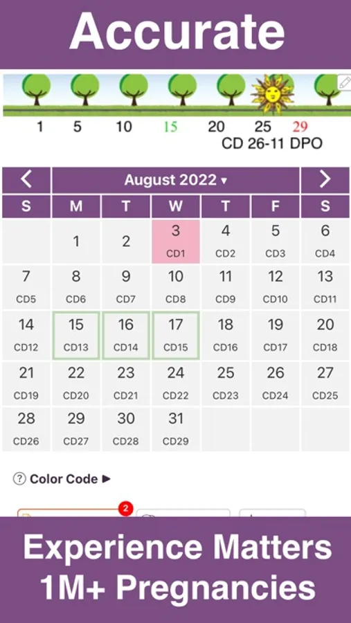 * Color coded fertility calendar: Your period, fertile days, ovulation and more at a glance.