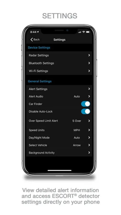 • Integrates with compatible ESCORT and Beltronics products to control settings and present alert information