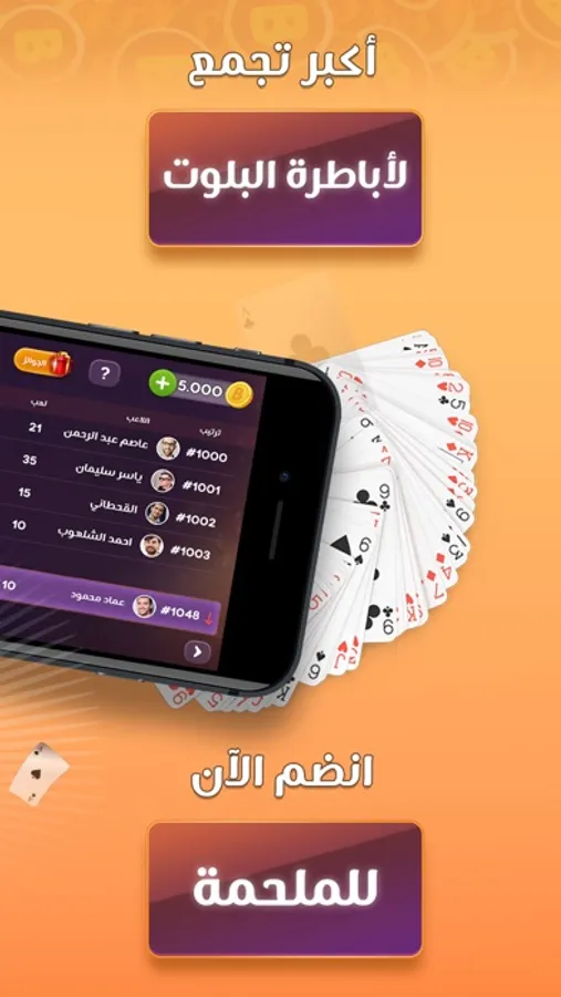 شارك اللعب مع أصدقائك والعب بلوت في أي وقت ومع من تحب، نعرف على أصدقائك وعيش تجربة حماسية مليئة بالتنافس وتحاكي الواقع.