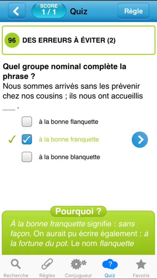 - en se testant avec les quiz, bien ciblés, accessibles depuis la règle : un moyen ludique et efficace pour vérifier qu’on a bien compris.