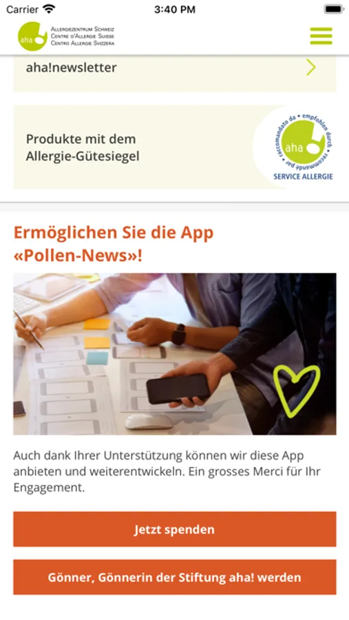 aha! Allergiezentrum Schweiz setzt sich für über drei Millionen Menschen in der Schweiz mit Allergien und Intoleranzen ein. Die Stiftung informiert, berät und bildet aus – damit Betroffene zurück zu mehr Lebensqualität finden. Mehr auf aha.ch und pollenundallergie.ch