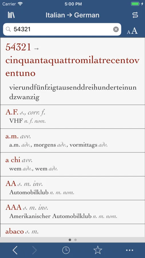 • Language swapper button to switch from German-Italian to Italian-German