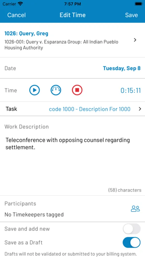 Welcome to iTimekeep, the time entry App that attorneys love to use.