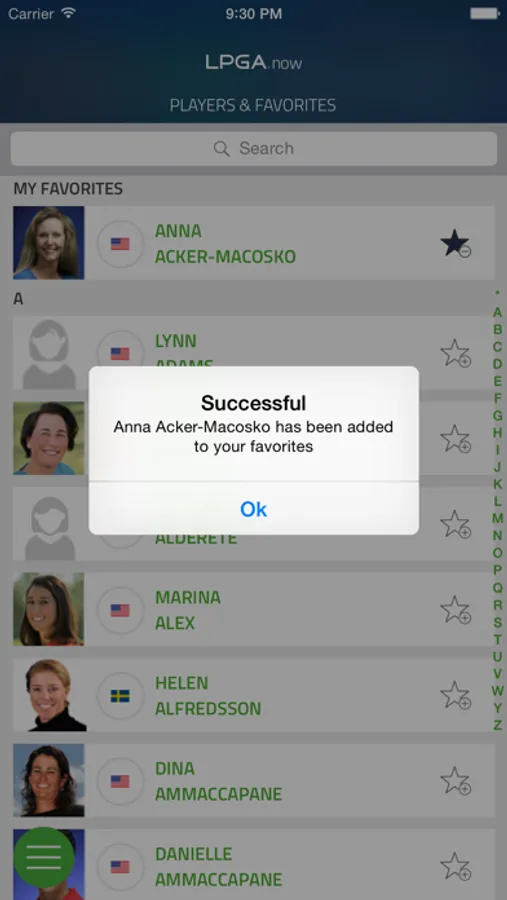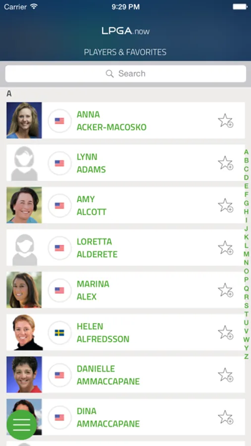 + Players & Favorites - Select your favorite golfers to easily follow throughout the app and have easy access to every LPGA member's bio and stats