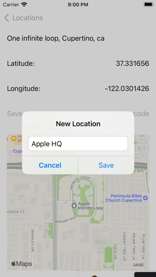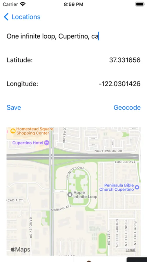 Allows users to get the latitude/longitude pair for the address that is entered by the user. It also allows the user to save locations that have been geocoded for future reference.