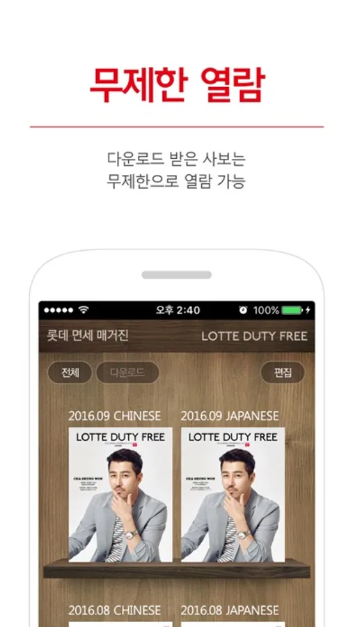 월간 [THE LOTTE]는 롯데면세점 VIP 고객을 위한 쇼핑&라이프스타일 매거진으로, 내국인뿐 아니라 한국을 찾는 중국, 일본 관광객에게 쇼핑과 한국적인 문화 컨텐츠를 제공하고 있습니다. 중국판과 일본판 두 종류로 발행하는 [THE LOTTE]는 매거진을 통해 다양하고 풍부한 쇼핑 정보와 함께 한류를 만끽할 수 있는 한국적인 라이프스타일을 생생하게 경험할 수 있습니다. [THE LOTTE]는 온∙오프라인을 통해 보실 수 있습니다.