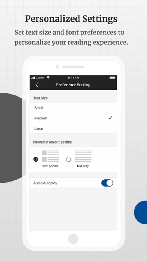 In addition to scrolling up and down to read articles and lists of news headlines, mobile device users can also swipe right or left to browse different news categories and articles.