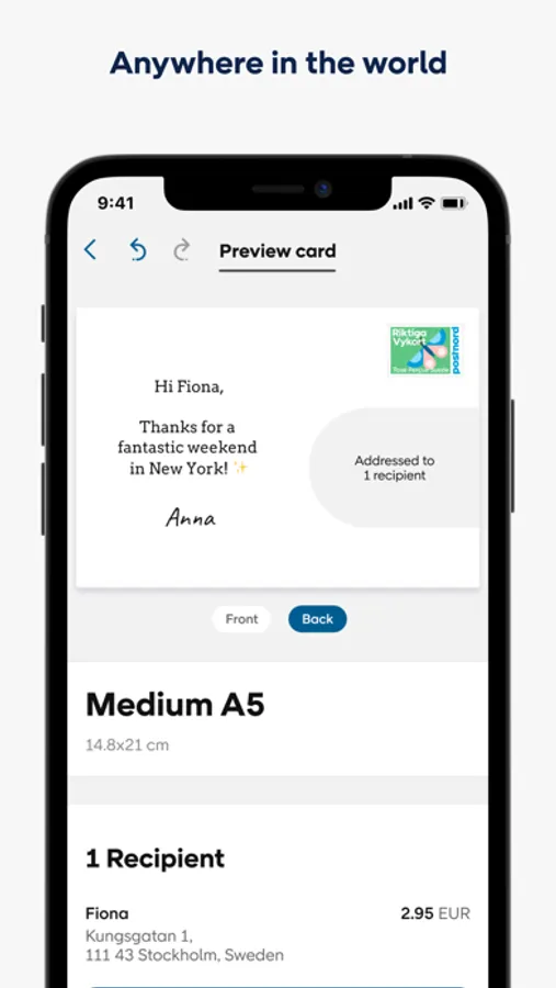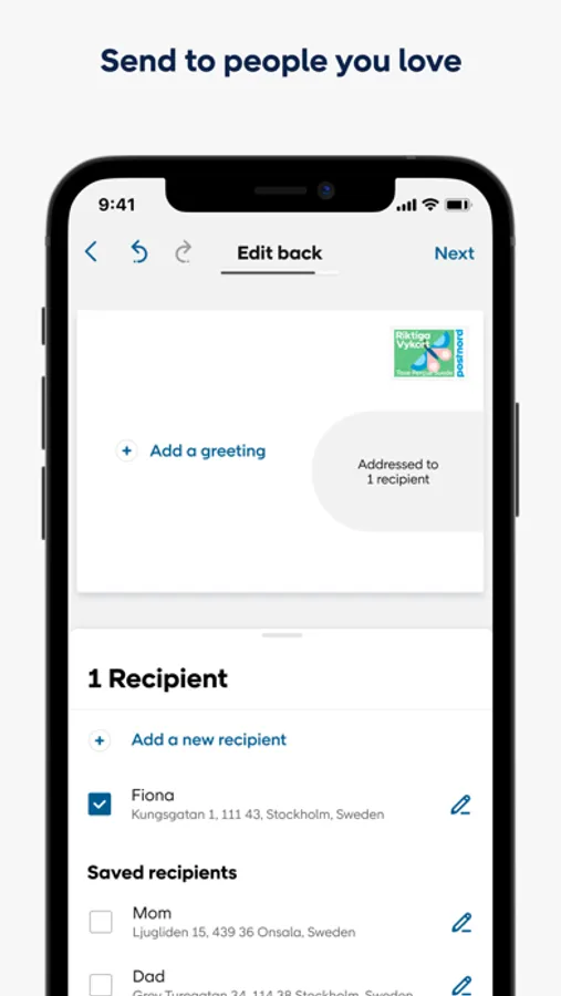 • PostNord Sweden will print and send the postcard to the recipient you have chosen