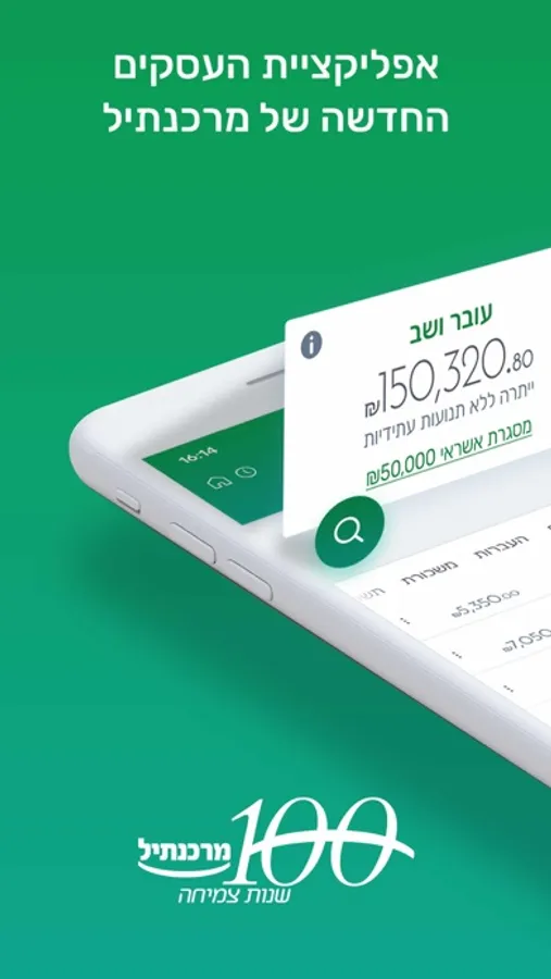 *ההורדה והשימוש באפליקציה הן ללא עלות, כשירות ללקוחות העסקיים של בנק מרכנתיל בלבד