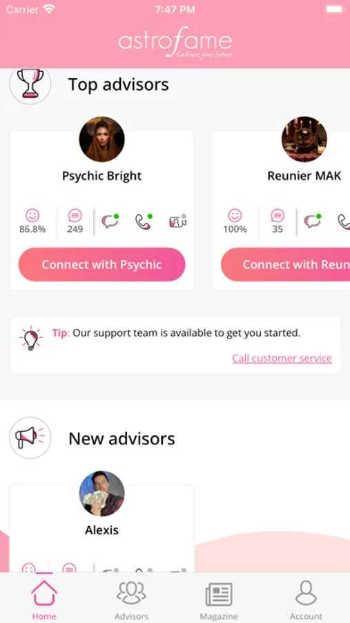 The Astrofame application allows you to find your experts, manage your appointments, discover the Top and the New.