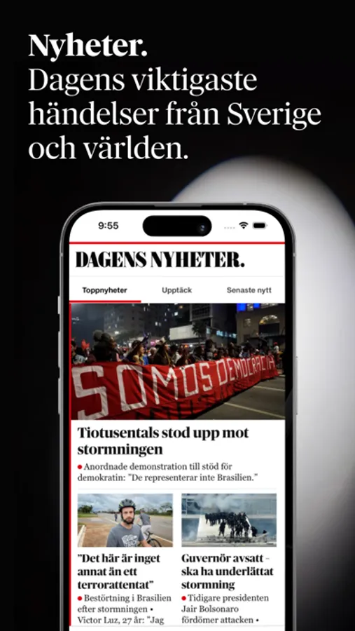 Med appen får du ut det bästa av DN:s kvalitetsjournalistik och blir uppdaterad om de senaste nyheterna genom en rad smarta funktioner: