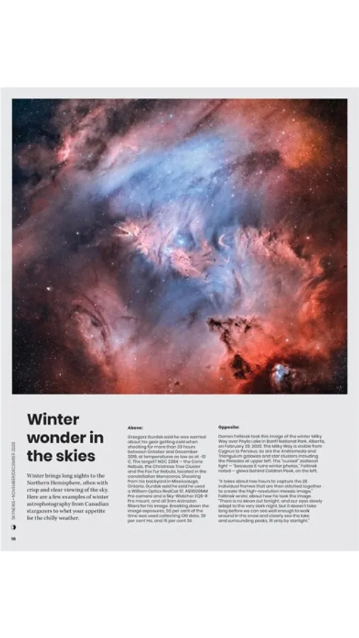 SkyNews is a hands-on magazine for amateur astronomers in Canada. It’s written for active stargazers including beginners and intermediates. Each issue contains a current Star Chart for Canada and the northern U.S., seasonal observing tips, expert equipment reviews, space news, a Photo Gallery of reader’s best astrophotos and much more. Edited by popular astronomy author Terrence Dickinson, SkyNews features some of the world’s best science writers including Alen Dyer, Ken Hewitt-White, Gary Seronik, David Levy, Ray Villard and others.