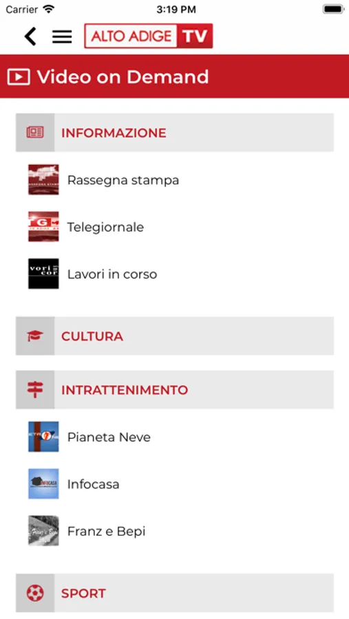 - VideoOnDemand: video archivio di tutte le trasmissioni di AltoAdige TV