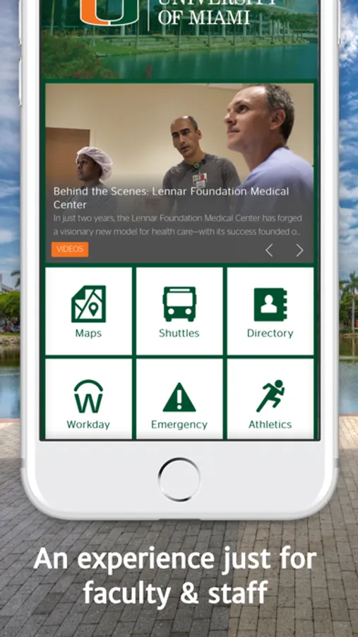 With the UMiami mobile app, you can take The U whenever you’re on the move. Whether you’re a student or employee, you can quickly access campus news, information, and resources that are important to you - anytime.