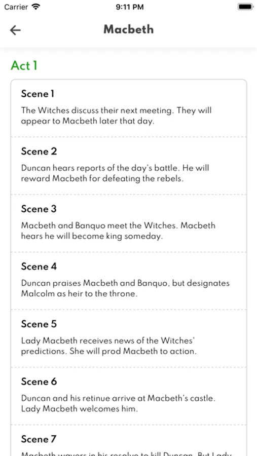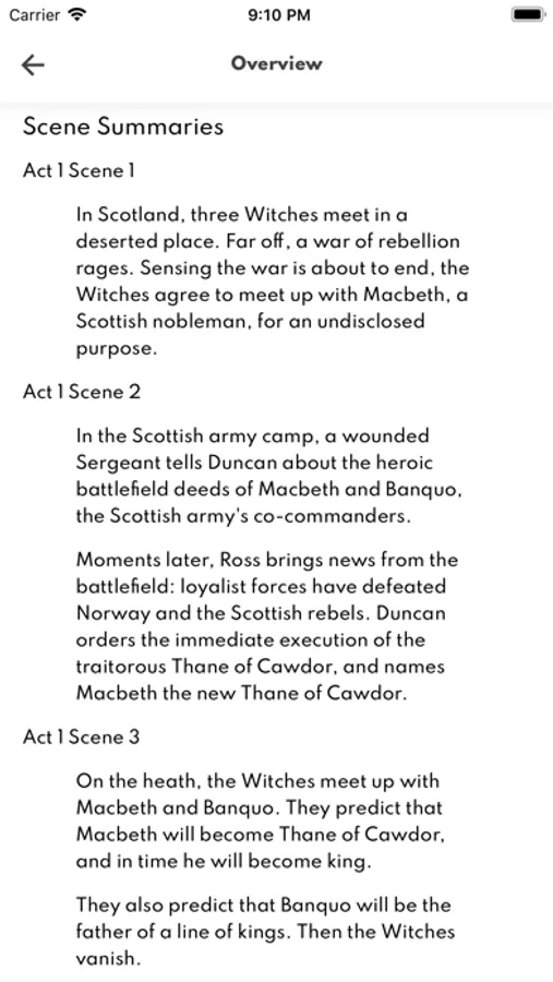 A detailed overview of every act and scene in the play.