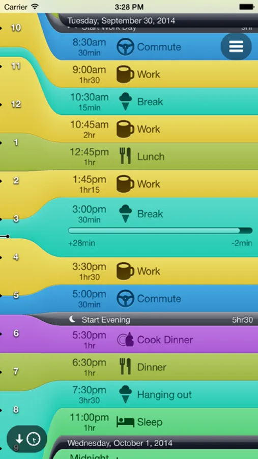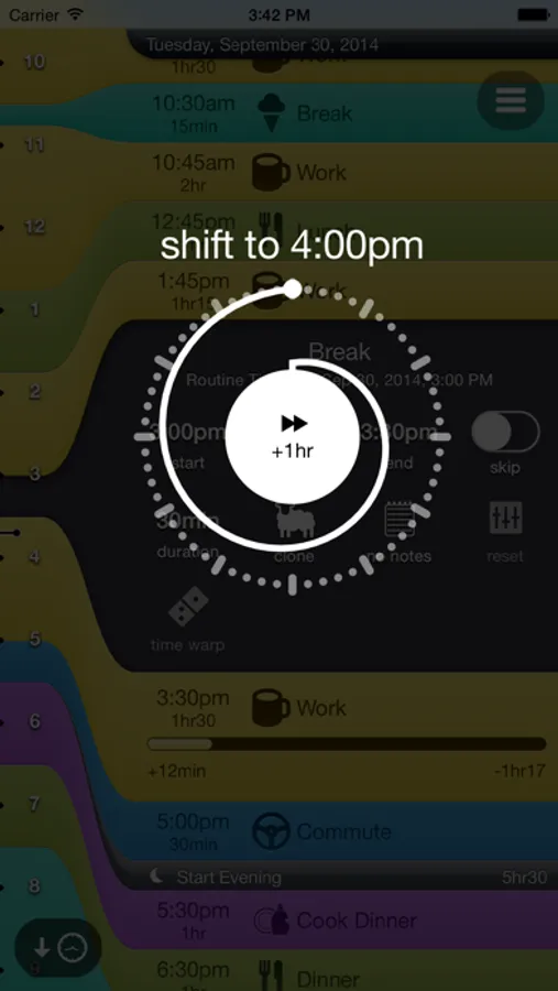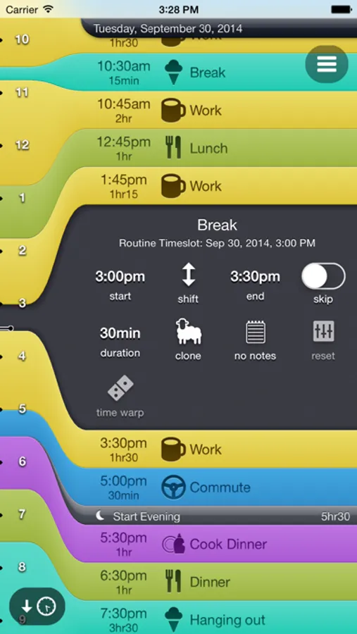 • Edit your routines and timeslots directly in the timeline
