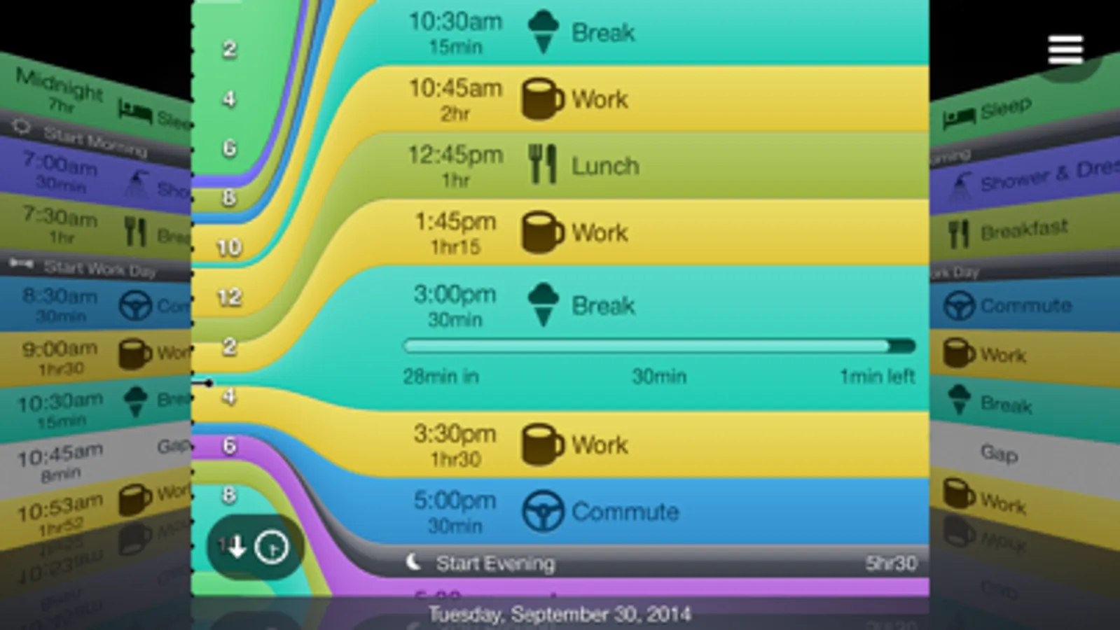 • Updated landscape view shows your time as a sequence of days