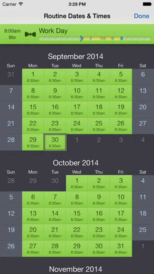 • Tap & drag the routine calendar to specify dates for a routine