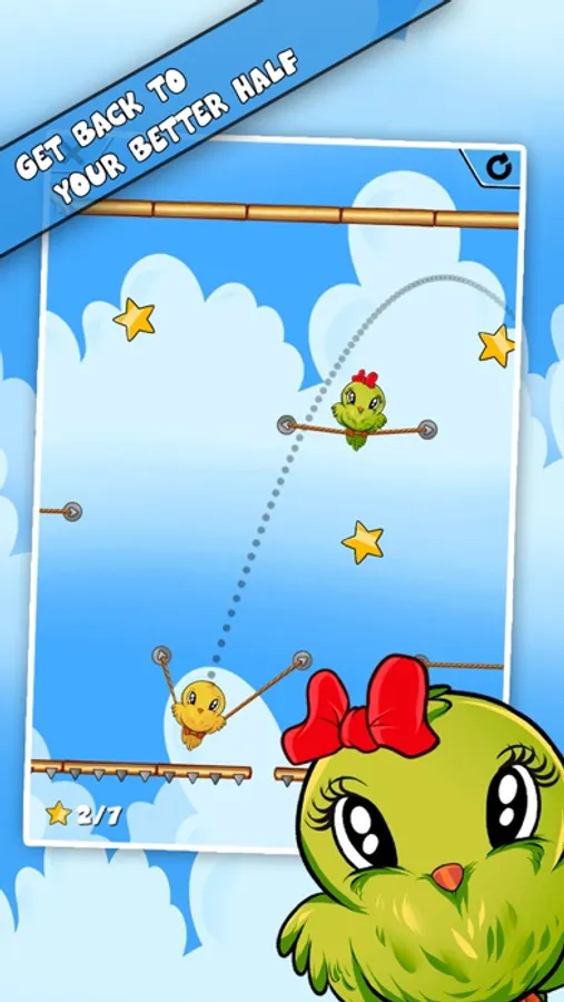 A little bird wants to join his better half but the cruel world won't let him. Collect as many stars as you can while jumping between wires and avoiding pitfalls.