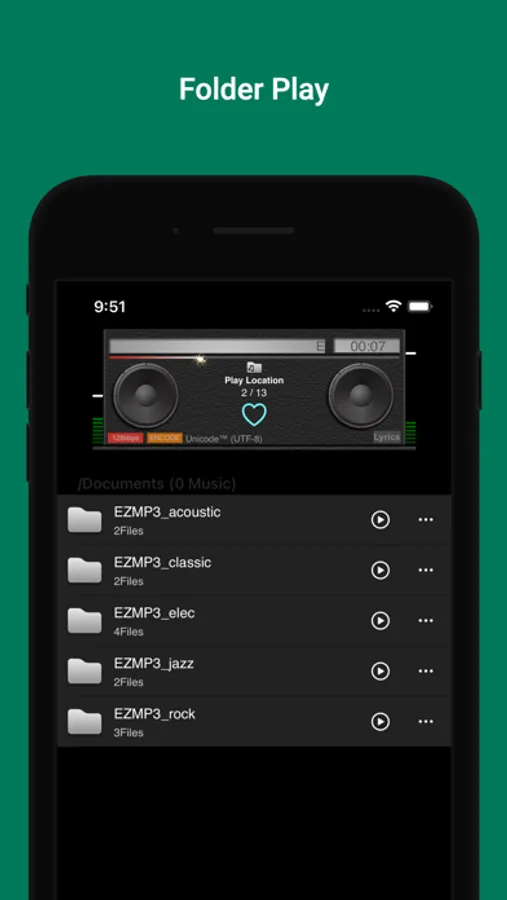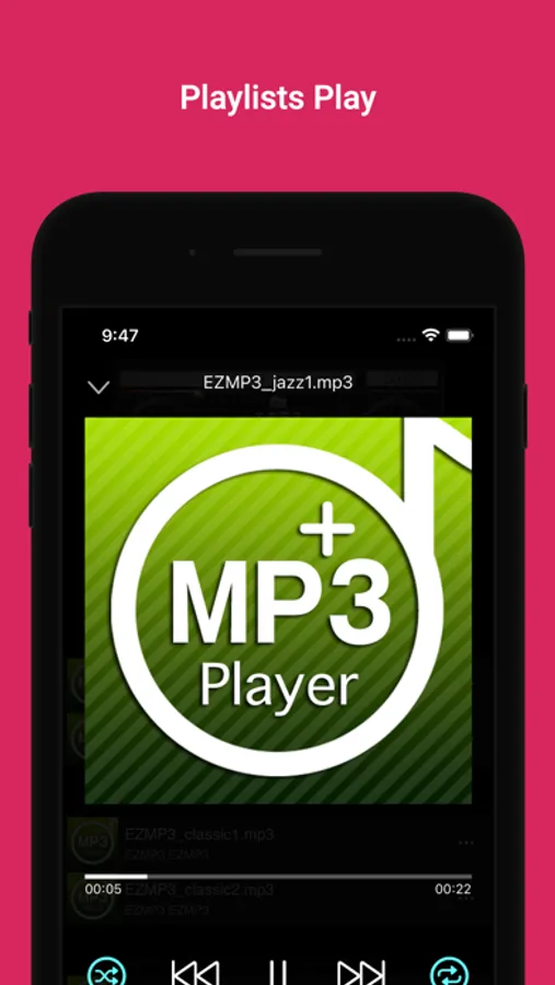 EZMP3 PLAYER Pro is a music player which can play mp3, m4a, flac, wav files.