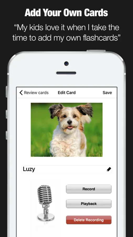 "I love this app. You can customize all the flashcards with your own voice plus add your own. My baby loves it and his older siblings had so much fun recording their voices to the animal flashcards along with silly animal sounds. It is probably one if the most fun baby apps available."