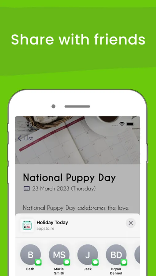 • Add events to your device calendar to remind yourself of upcoming holidays