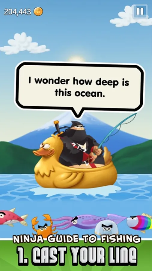 Cast your hook as deep as possible into the ocean, then use the tilt controls to reel back as many fish as you can. Finally, use the katana-powered touch technology to slice the scaly fish right out of the sky for maximum gold profit (watch out for the Dynamites).