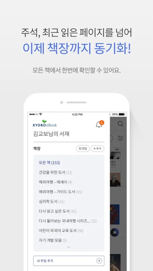 4. 형광펜, 메모, 최근 읽은 페이지, 이제 책장까지 동기화한다!