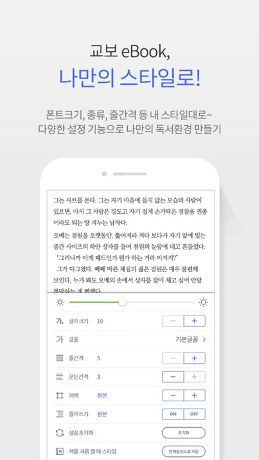 > 최적화된 eBook독서 경험을 위한 읽기 설정과 기능을 더욱 강화 했습니다.