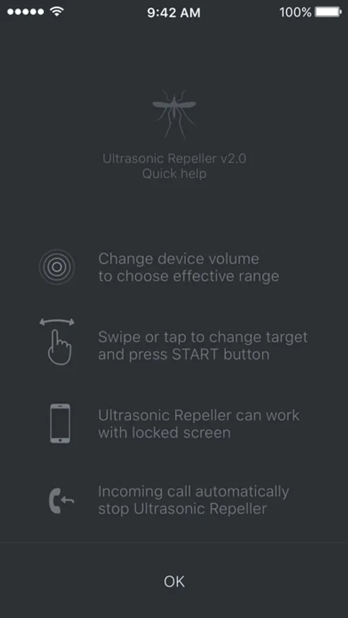 Ultrasonic Repeller easy to use, and also it is a free application, you don't need to spend hundreds of dollars for a similar device. You have your iPhone and Ultrasonic Repeller - that's enough!