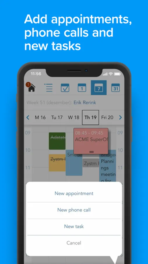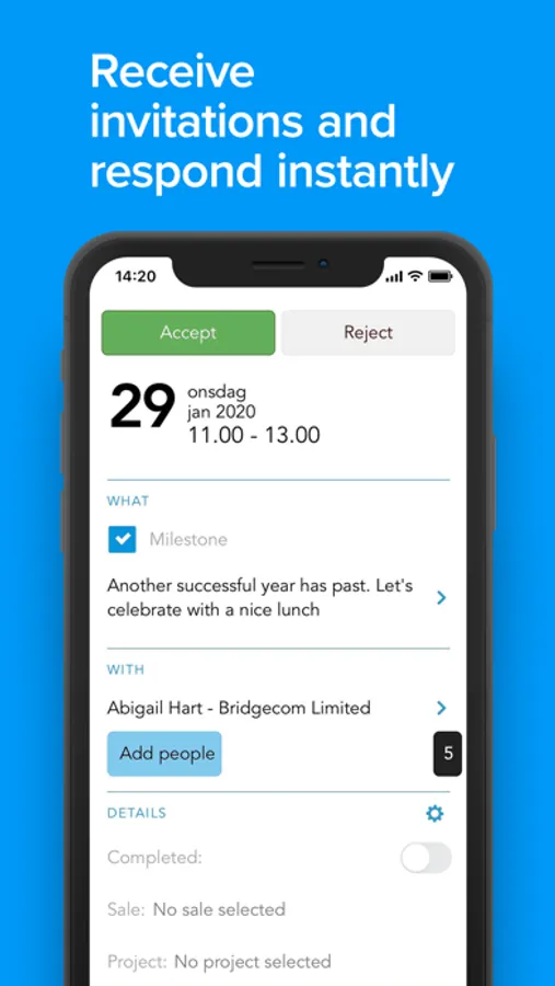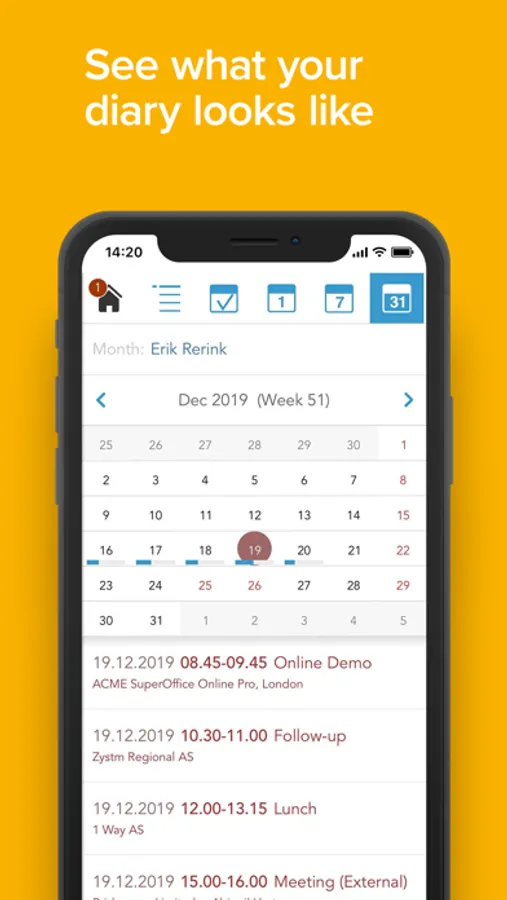 Schedule or reschedule meetings and activities, communicate to colleagues or save new information – all while on the go.