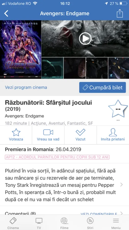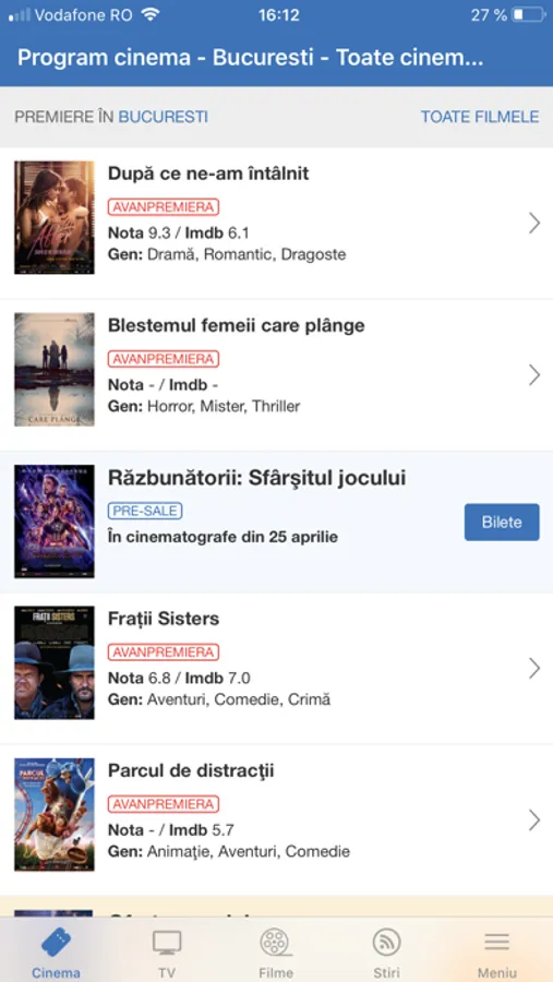 - Cumparare bilete cinema