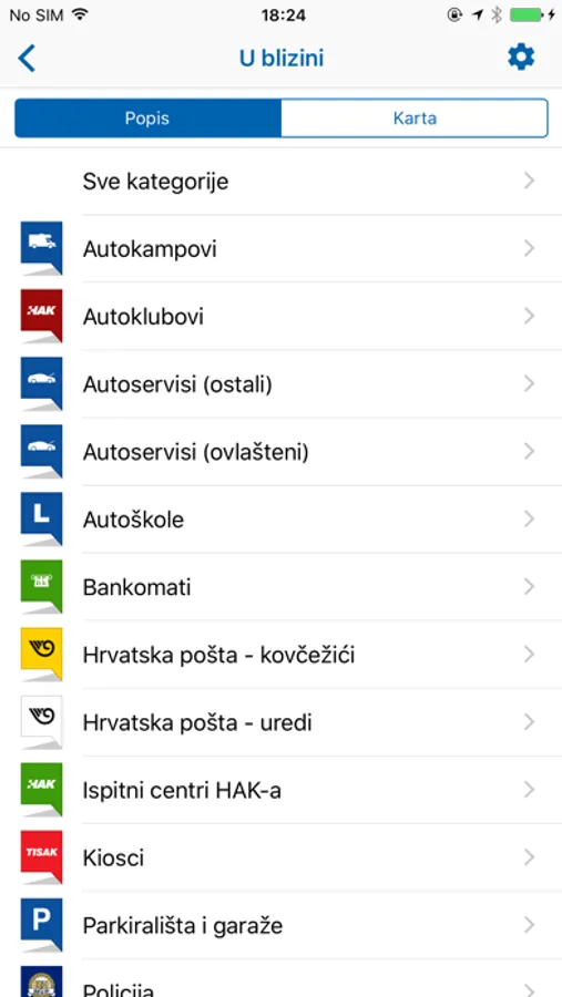 - pregled velikog broja interesnih točaka (POI) raspoređenih u kategorije (autokampovi, autoškole, bankomati, bolnice, hosteli, hoteli, poštanski uredi i kovčežići, kiosci, ljekarne, nacionalni parkovi, parkovi prirode, poslovnice banaka, prodavaonice, stanice za tehnički pregled i dr.)