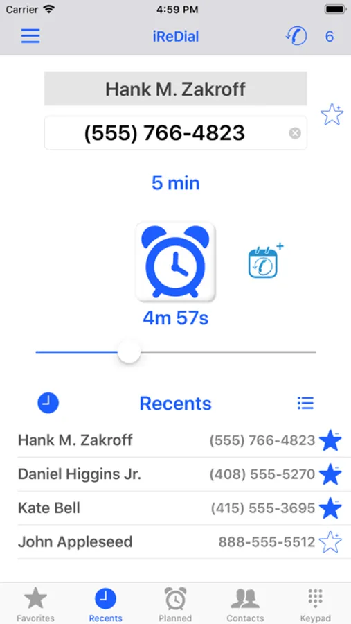 NOTE: iReDial is NOT an automatic dialer. It simply notifies you of the phone calls you decided to postpone. At the notification, you decide whether to call.