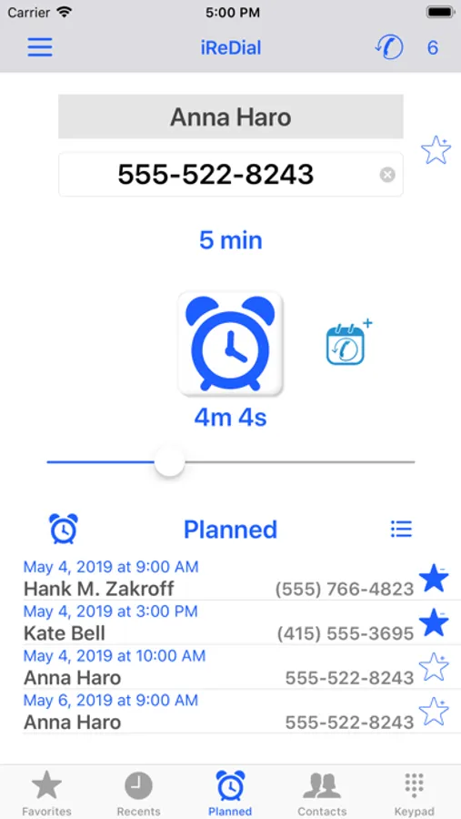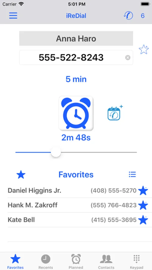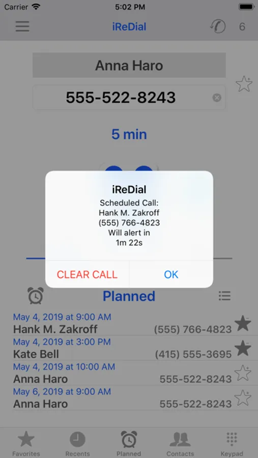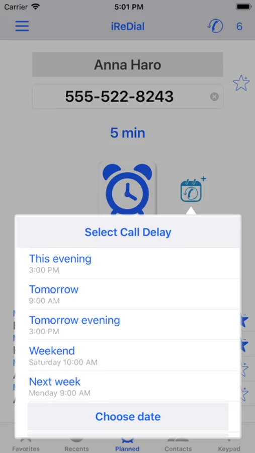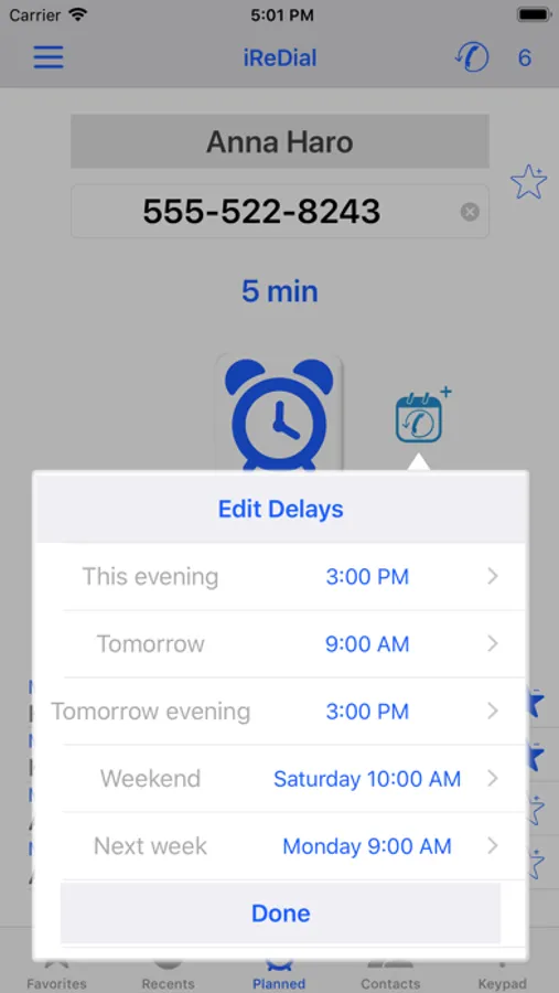With iReDial all you need to do is type the phone number and set when you want to call.