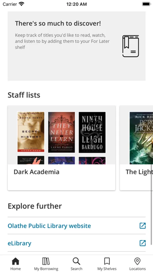 Use the Olathe Public Library app to browse the library collection, view and manage account information and plan your next visit.