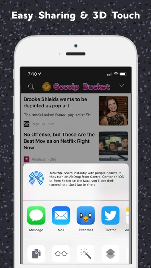 Gossip Bucket delivers celebrity gossip from all over the web in one amazing app. Gossip Bucket is like having 30+ gossip blogs and magazines in one easy to read format. The latest celebrity news, gossip, tweets and pics just a tap away.