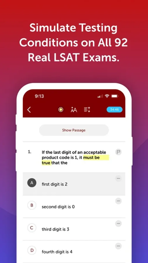 Simulate an authentic digital LSAT experience on all 90 Prep Tests.