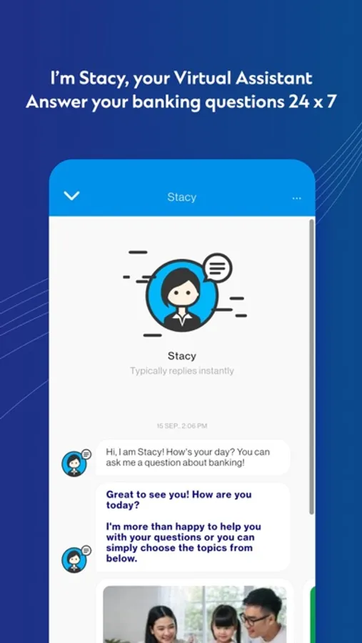 Enjoy 24/7 support for your banking needs with our chatbot — Stacy.