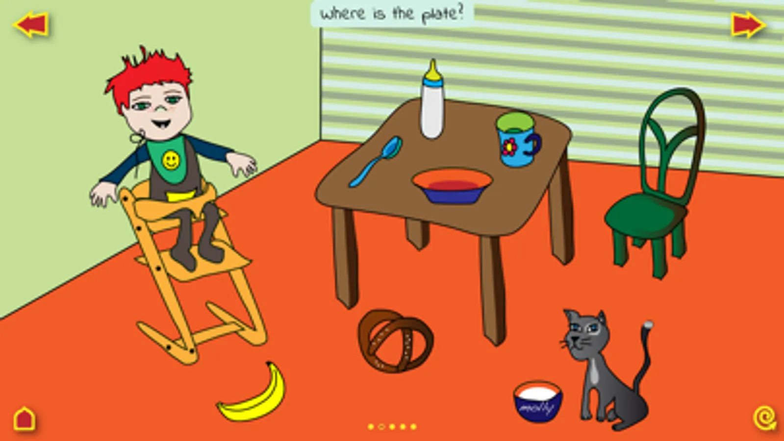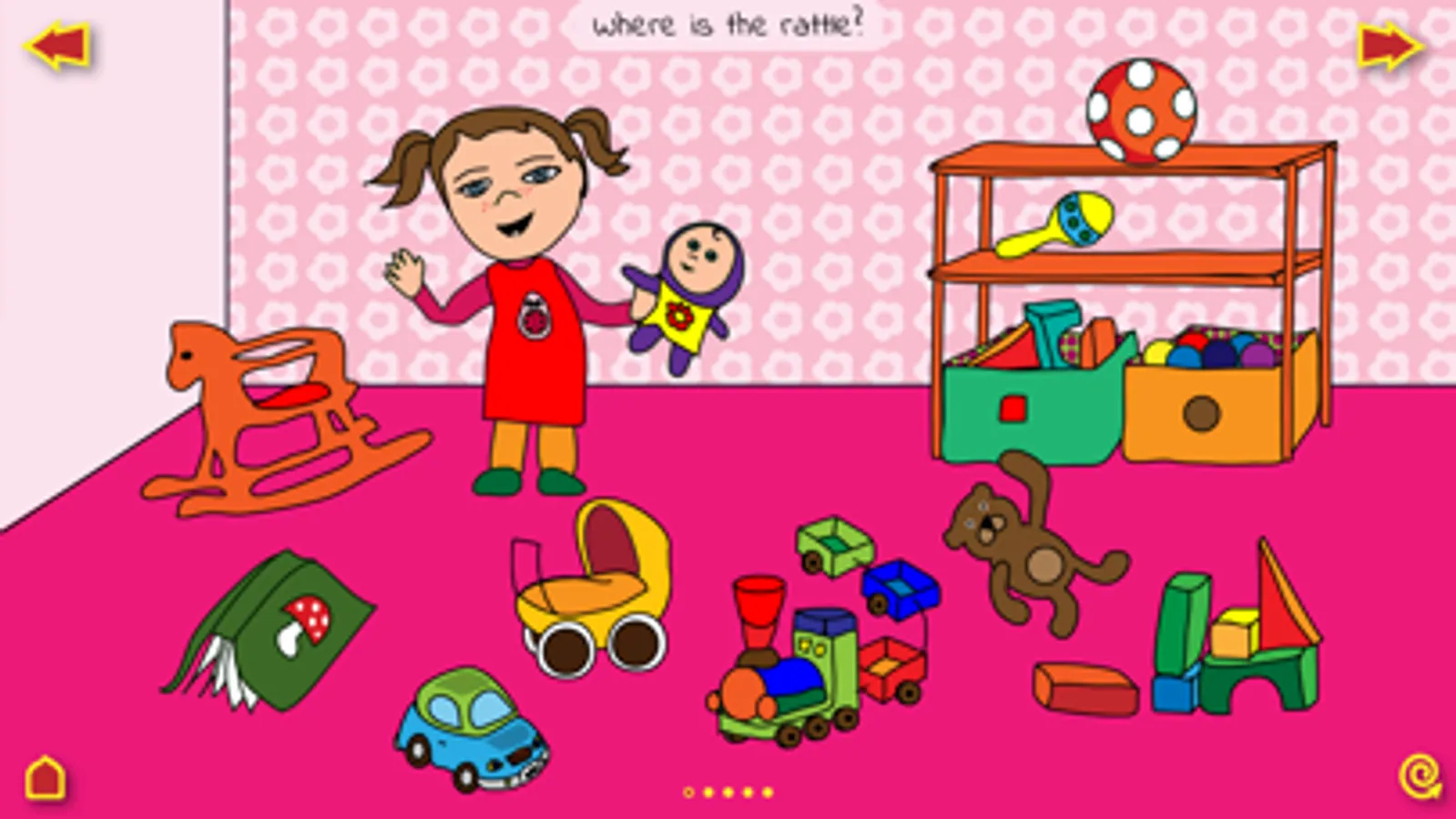 • Level 2, the toddler is asked to find a certain object and gets fun, positive feedback from colorful balloons in return.