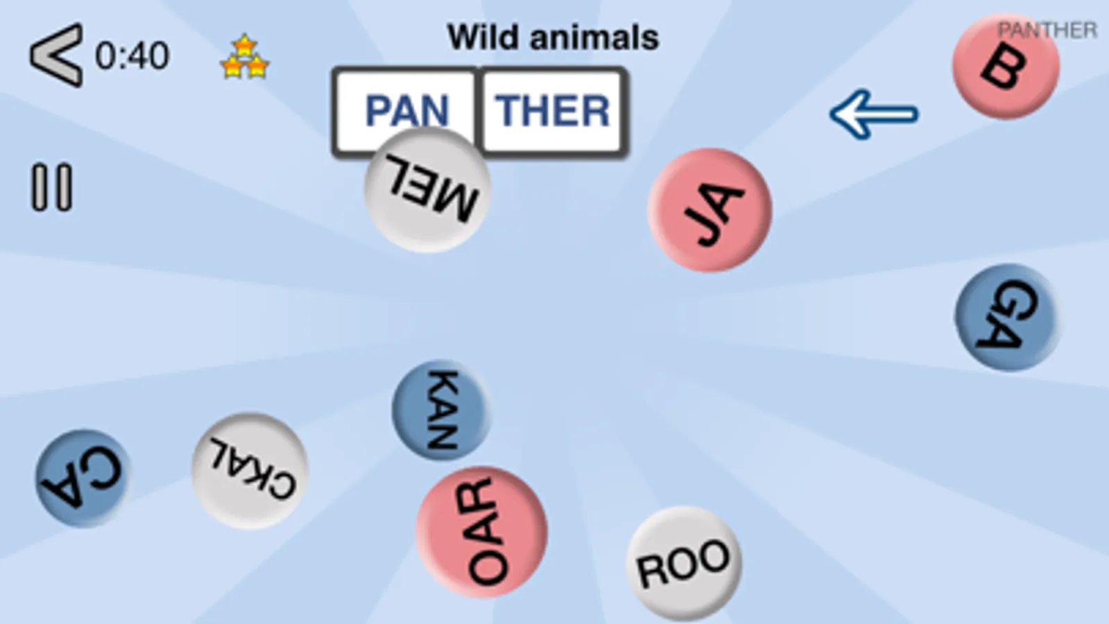 The goal of the game : build words with the proposed syllables. In each game, words belong to a specific category.
