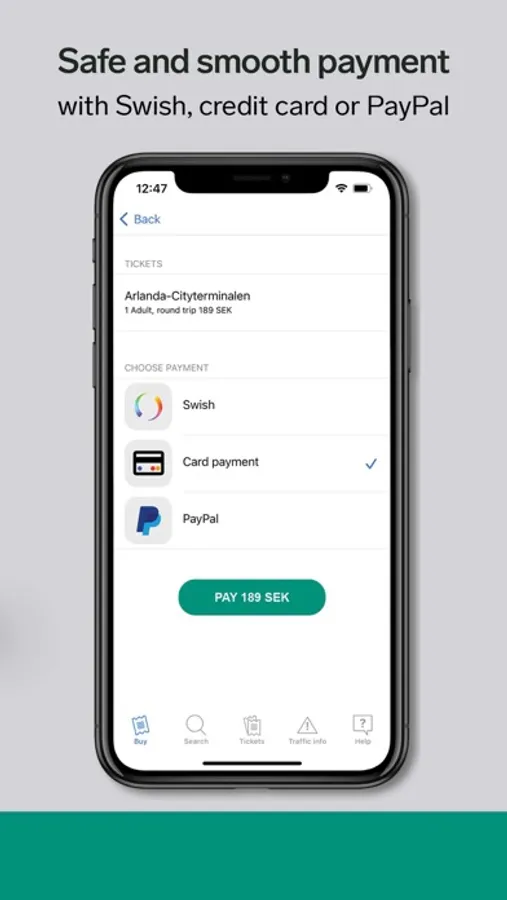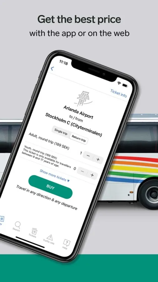With Flygbussarna’s app you can easily search and see departures to and from the airport. You can buy tickets and pay with credit cards such as VISA, MasterCard, Diners and American Express. You can also pay using Swish or Paypal.